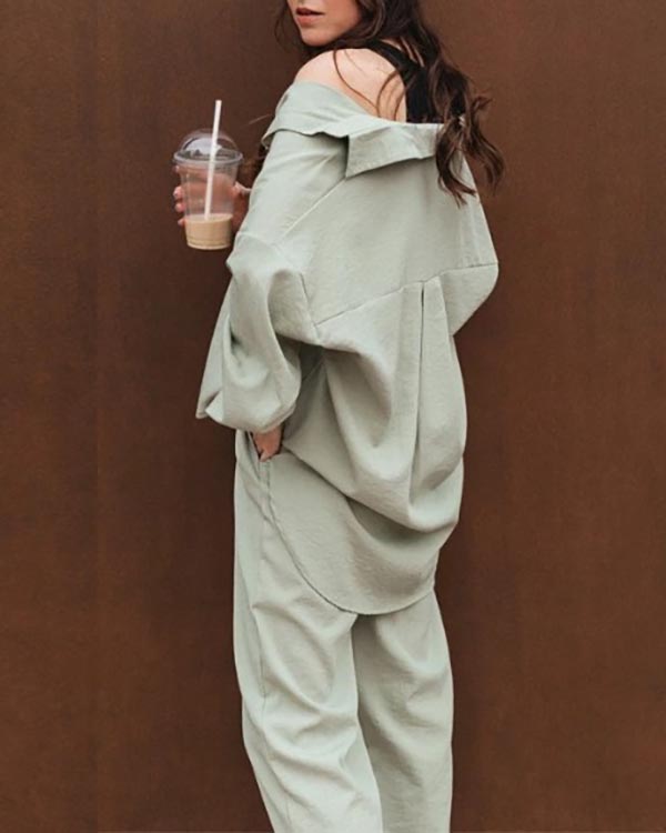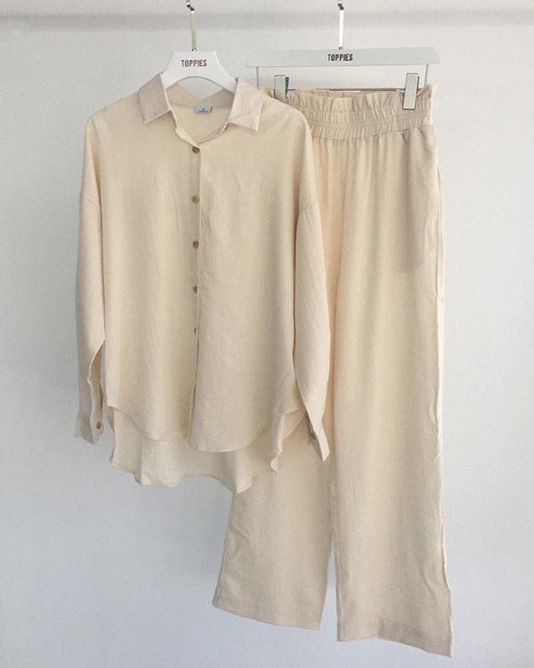 Linen Set Casual Shirt Elastic Pants Suits