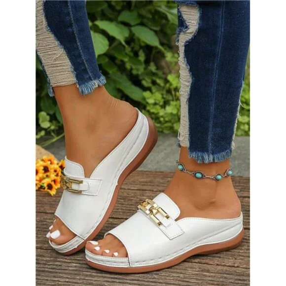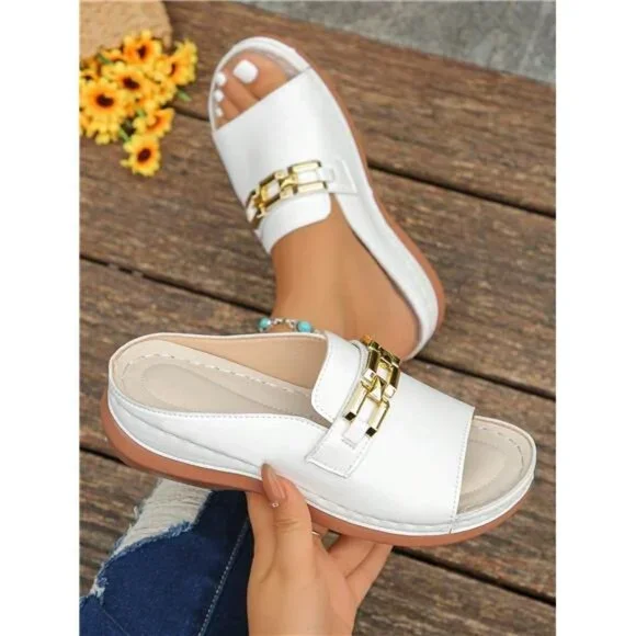 Women's Summer Fashionable Wedge Metal Chain Leather Sandals-Limited 50% Off
