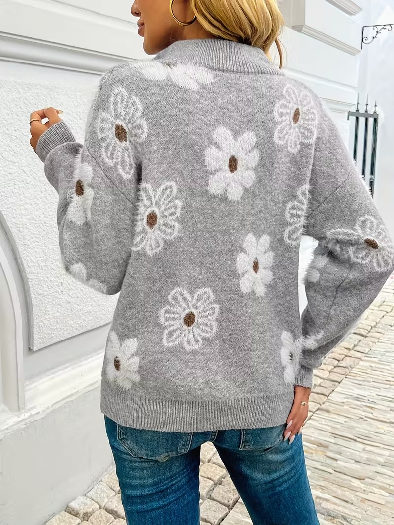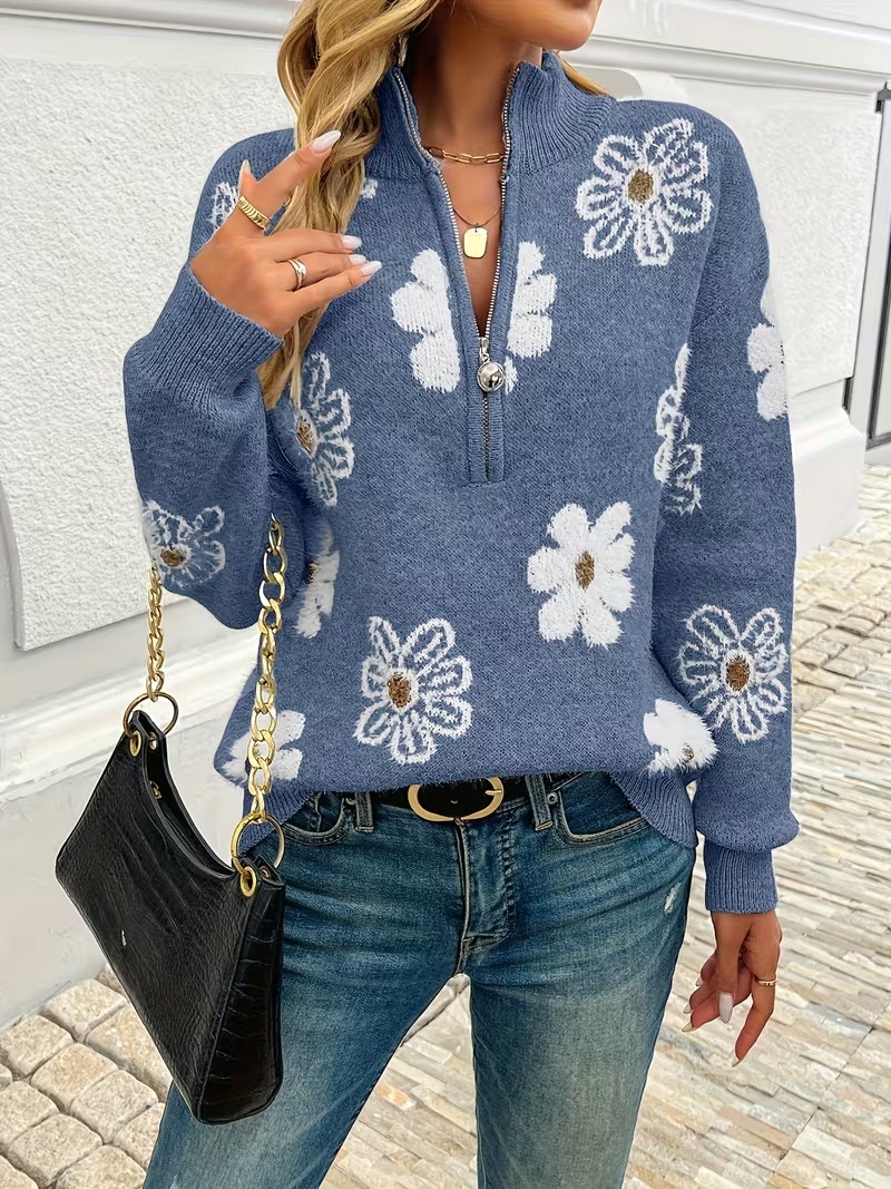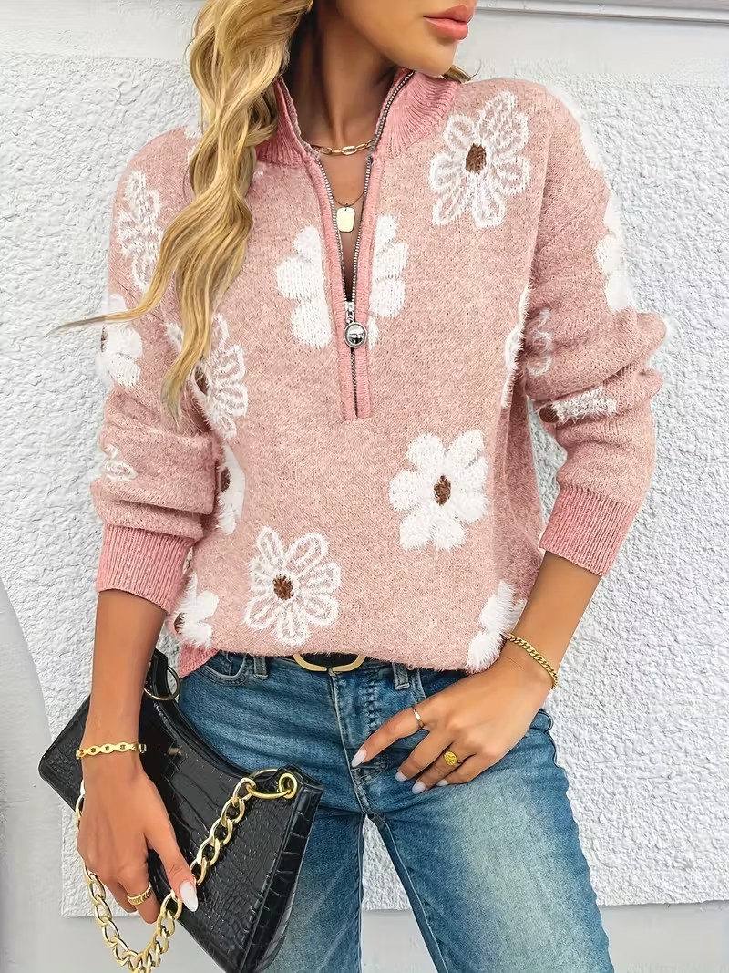 2026 Sping New Floral Pattern Half-zip Pullover Sweater