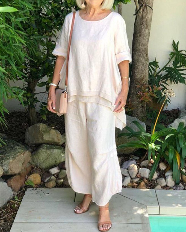 Long Sleeve Crew Neck Top Pants Loose Two-piece Suit